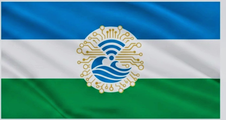 La bandera del Reino Online del Uruguay se presenta en una proporción 2:3, manteniendo la elegancia de los estandartes internacionales. Su diseño se aleja deliberadamente de los símbolos tradicionales para abrazar una nueva era: la de la soberanía del conocimiento y el agua.